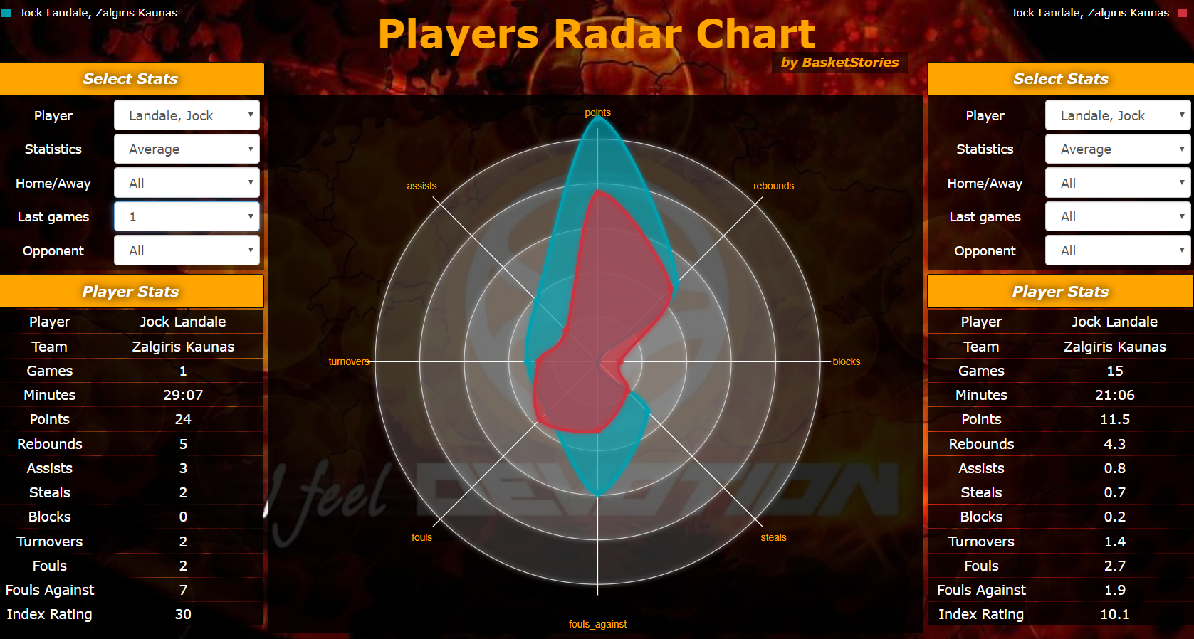 Χαρακτηριστικό είναι το πιο πρόσφατο παράδειγμα του Jock Londale της Ζαλγκίρις. O Αυστραλός σέντερ ξεκίνησε νωθρά τη σεζόν, αρχίζοντας να σημειώνει διψήφια ράνκινγκς από την 7η αγωνιστική και μετά. Με την εξαίρεση του 23 Index Rating κόντρα στον Ολυμπιακό την 8η αγωνιστική, ο Landale δεν είχε ξεπεράσει ποτέ το 13 στη σχετική κατηγορία, μέχρι την αναμέτρηση με την Χίμκι, έχοντας επιχειρήσει μάλιστα τρίποντο σε 13 από τα 14 προηγούμενα ματς.