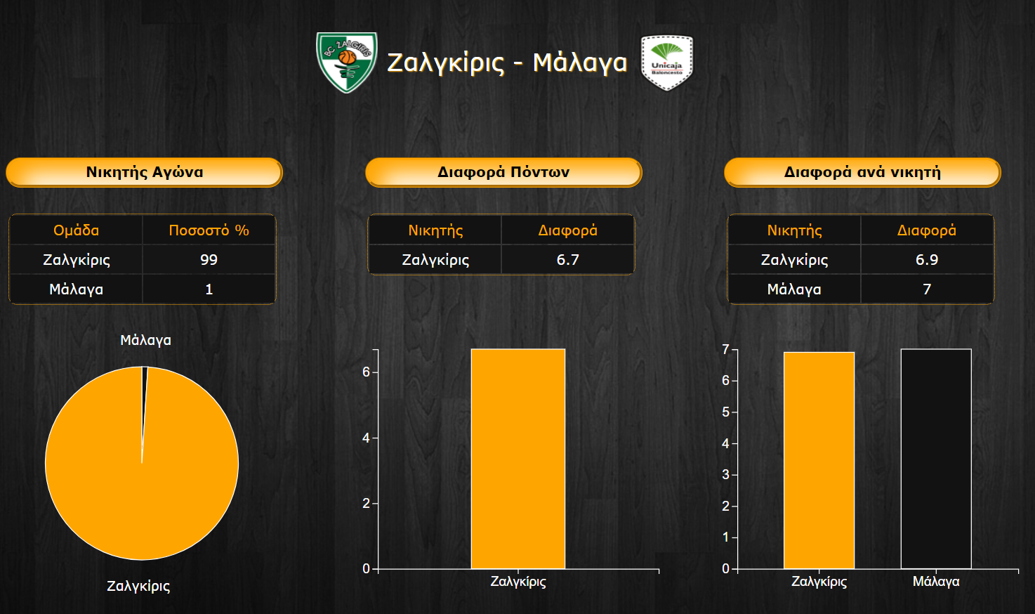 Η αύρα του Σάρας και του συνόλου που έχει δημιουργήσει, όπως και φυσικά η αγωνιστική εικόνα και ταυτότητα της Ζαλγκίρις καθιστούν αδιαφιλονίκητο φαβορί της αναμέτρησης του Λιθουανούς, με ποσοστό 99%, ενώ μόλις ένας στους 100 θεωρεί ότι η Μάλαγα θα πάρει την εκτός έδρας νίκη.