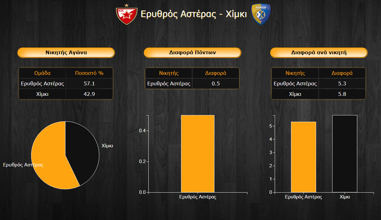 Ο Ερυθρός Αστέρας δέχθηκε για δεύτερη φορά φέτος στην Ευρωλίγκα πάνω από 100 πόντους στην έδρα της Αναντολού Εφές και θέλει να σταθεί καλύτερα στην επιστροφή στο σπίτι του εκεί που υποδέχεται τη Χίμκι. Η ομάδα του Γιώργου Μπαρτζώκα υπέστη βαριά ήττα στην έδρα της από την καταιγιστική Ρεάλ Μαδρίτης και θέλει άμεση ανάκαμψη σε ένα κρίσιμο σημείο της χρονιάς που όλα είναι ακόμα ανοιχτά στη μάχη των playoffs. Η έδρα των Σέρβων δεν είναι εύκολη για κανέναν και ειδικά για τους ευάλωτους τελευταία ψυχολογικά Ρώσους κι έτσι η Χίμκι θα πρέπει να είναι σοβαρή για να διεκδικήσει το διπλό που θα την φέρει σε καλύτερη βαθμολογική θέση πριν τον εξίσου κρίσιμο αγώνα με τον Ολυμπιακό στο δεύτερο μέρος της διπλής αγωνιστικής.