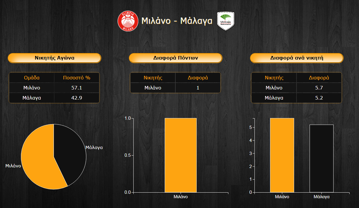 Η Αρμάνι Μιλάνο δείχνει ανήμπορη να σταματήσει την κατηφόρα παραμένοντας κολλημένη στην τελευταία θέση της κατάταξης με το κάκιστο ρεκόρ του 4-13 διανύοντας έτσι ακόμα μια χρονιά που βαδίζει σε μια ακόμα αποτυχία παρά τις φιλόδοξες μεταγραφές. Το εντός έδρας παιχνίδι με την Ουνικάχα Μάλαγα είναι ανάμεσα σε αυτά που οι Ιταλοί θέλουν πάση θυσία καθώς με τις νίκες να έρχονται με το σταγονόμετρο, αυτά τα παιχνίδια είναι must για την ομάδα του Pianigiani. Η ομάδα της Ανδαλουσίας προέρχεται από δύο ήττες στην Ευρωλίγκα, αλλά και τη νίκη κόντρα στην Μπαρτσελόνα στο πρωτάθλημα Ισπανίας. Οι Ισπανοί είναι επικίνδυνοι και μπορούν ασφαλώς να χτυπήσουν το παιχνίδι καθώς έχουν παρουσιάσει ένα πιο σοβαρό πρόσωπο από την ιταλική ομάδα όπως αποδεικνύει και το ρεκόρ τους με τρεις νίκες περισσότερες.