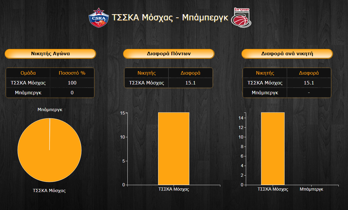Η ΤΣΣΚΑ Μόσχας διαθέτει το υψηλότερο ranking στη διοργάνωση (104,4)και την καλύτερη επίθεση με 89,5 πόντους. Η Μπάμπεργκ από την άλλη βρίσκεται στην πρώτη θέση της αντίστοιχης κατηγορίας... από το τέλος με μόλις 74,4 πόντους κατά μέσο όρο. Παράλληλα, δέχεται 80 πόντους ανά παιχνίδι, μια επίδοση που δεν προμηνύει κάτι θετικό στην έδρα της ομάδας του Δημήτρη Ιτούδη.