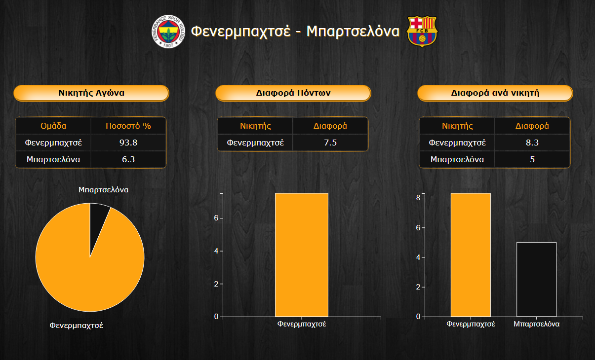 Η Μπαρτσελόνα μπορεί να σκοράρει 80,4 πόντους ανά παιχνίδι ξεπερνώντας την επίδοση της Φενερμπαχτσέ, είναι όμως ταυτόχρονα χειρότερη σε άμυνα από την εξαιρετική στα μετόπισθεν τουρκική ομάδα που διατηρεί παθητικό 73,6 πόντων.