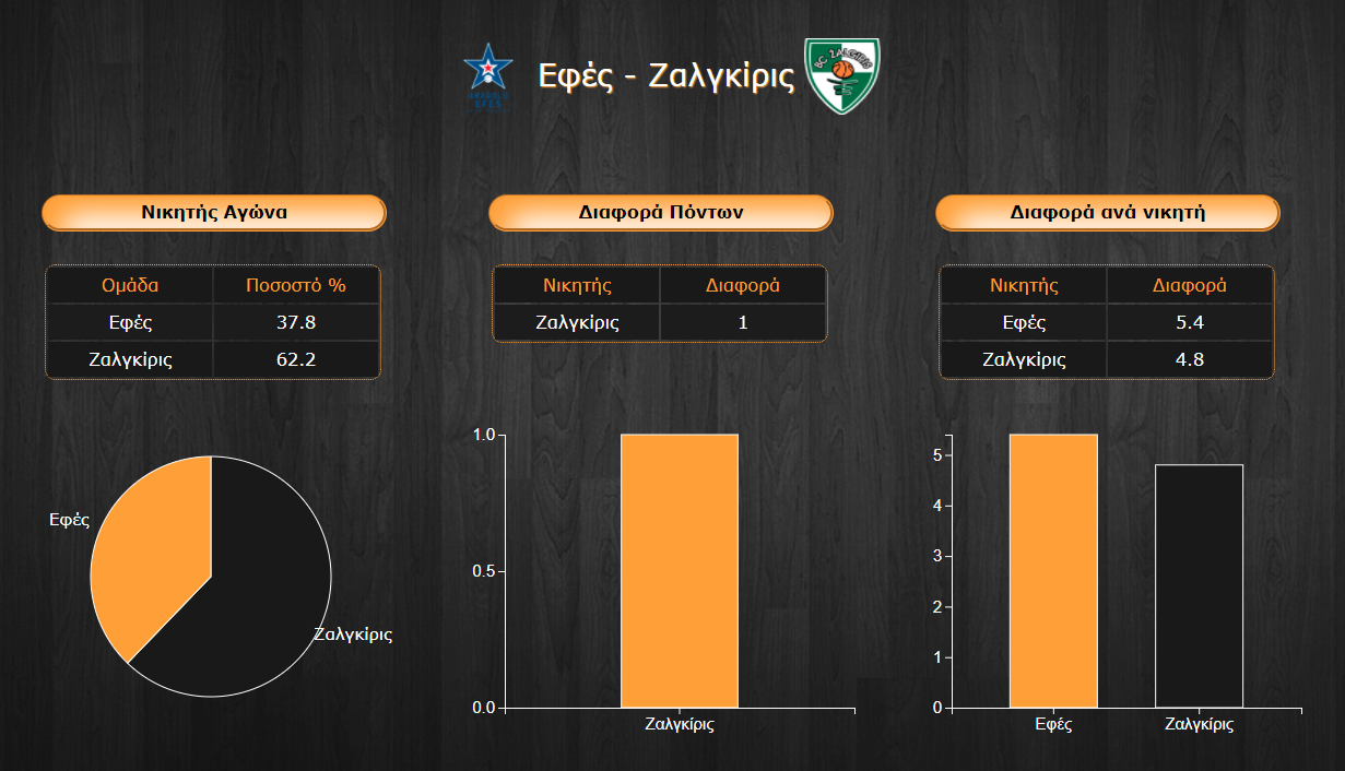 Η Εφές μπορεί να είναι η γηπεδούχος της αναμέτρησης, αλλά οι αμυντικές της επιδόσεις φέτος δεν συγκινούν ώστε να θεωρηθεί και το φαβορί κόντρα στη συμπαγή Ζαλγκίρις. Οι Τούρκοι που παρουσιάζουν ένα καλύτερο πρόσωπο μετά τον ερχομό του Ergin Ataman στον πάγκο, έχουν απογοητευτικούς μέσους όρους στην άμυνα δεχόμενοι 83 πόντους κατά μέσο όρο και επιτρέποντας στους αντιπάλους τους ποσοστά της τάξης του 54,3% στα δίποντα και 41,9% στα τρίποντα.