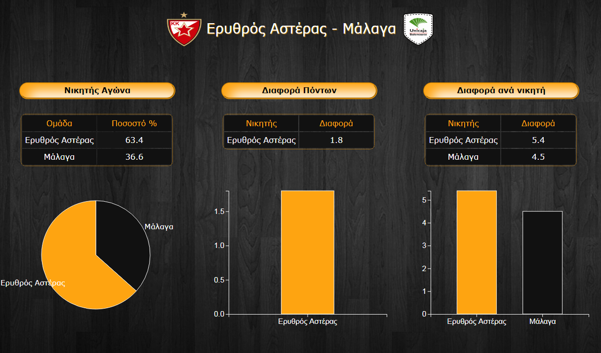 Η ομάδα της Ανδαλουσίας έχει οριακό προβάδισμα σε ποσοστά με 50,5% στα δίποντα και 35,6% στα τρίποντα έναντι 49,3% και 34% αντίστοιχα για τους Σέρβους, που όμως ίσως έχουν μικρή σημασία για τις συνθήκες του αγώνα καθώς σίγουρα στην έδρα των Σέρβων το παιχνίδι δεν θα είναι τόσο απλό για τη Μάλαγα όσο η εύκολη νίκη στην Ισπανία στον αγώνα του πρώτου γύρου. Η άμυνα του πρωταθλητή της ABA League φαίνεται ότι δεν τα πηγαίνει και πολύ καλά και στην απεικόνιση των ποσοστών αντιπάλων με 55,7% στα δίποντα και πάνω από 40% στα τρίποντα.