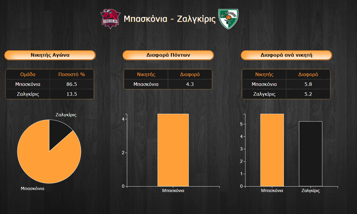 Η Ζαλγκίρις δεν τα κατάφερε κόντρα στη Φενερμπαχτσέ στο Κάουνας και πλέον είναι ισόβαθμη με τη Ρεάλ στην τέταρτη θέση έχοντας την άμεση απειλή να μείνει εκτός τετράδας. Η αποστολή στην Βιτόρια κόντρα στην Μπασκόνια είναι ένα δυνατό τεστ για την ομάδα του Sarunas Jasikevicius. Οι Βάσκοι βρίσκονται στην ένατη θέση και στο κυνήγι της όγδοης Μακάμπι με το παιχνίδι απέναντι στη λιθουανική ομάδα να είναι κομβικό για τη διατήρηση της ομάδας του Pedro Martinez σε θέση διεκδικητή για την πρόκριση στα playoffs της διοργάνωσης.