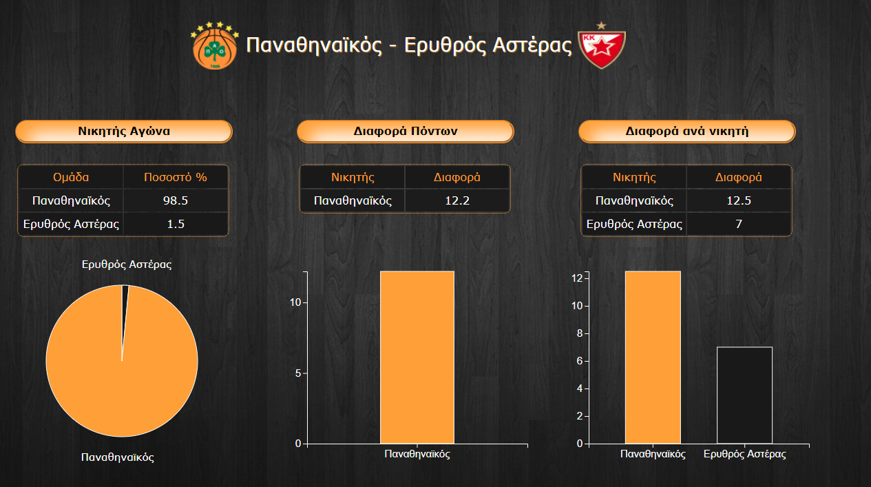 - Ο Παναθηναϊκός με όπλο του την καλύτερη άμυνα φιλοδοξεί να τιμωρήσει τη σερβική ομάδα η οποία δέχεται 83,5 πόντους από τους αντιπάλους της έχοντας επιδείξει μερικές επιεικώς άσχημες επιδόσεις κυρίως μακριά από το Βελιγράδι. Οι Σέρβοι επιτρέπουν στους αντιπάλους τους ποσοστά της τάξης του 55,6% στα δίποντα και άνω του 40% στα τρίποντα και για μια ομάδα με την ποιότητα του Παναθηναϊκού αυτά τα ποσοστά δεν είναι ελπιδοφόρα για την ομάδα του Alimpijevic. Αντίθετα, οι πράσινοι με 78 πόντους παθητικό και τη δύναμη της έδρας έχουν το προβάδισμα.