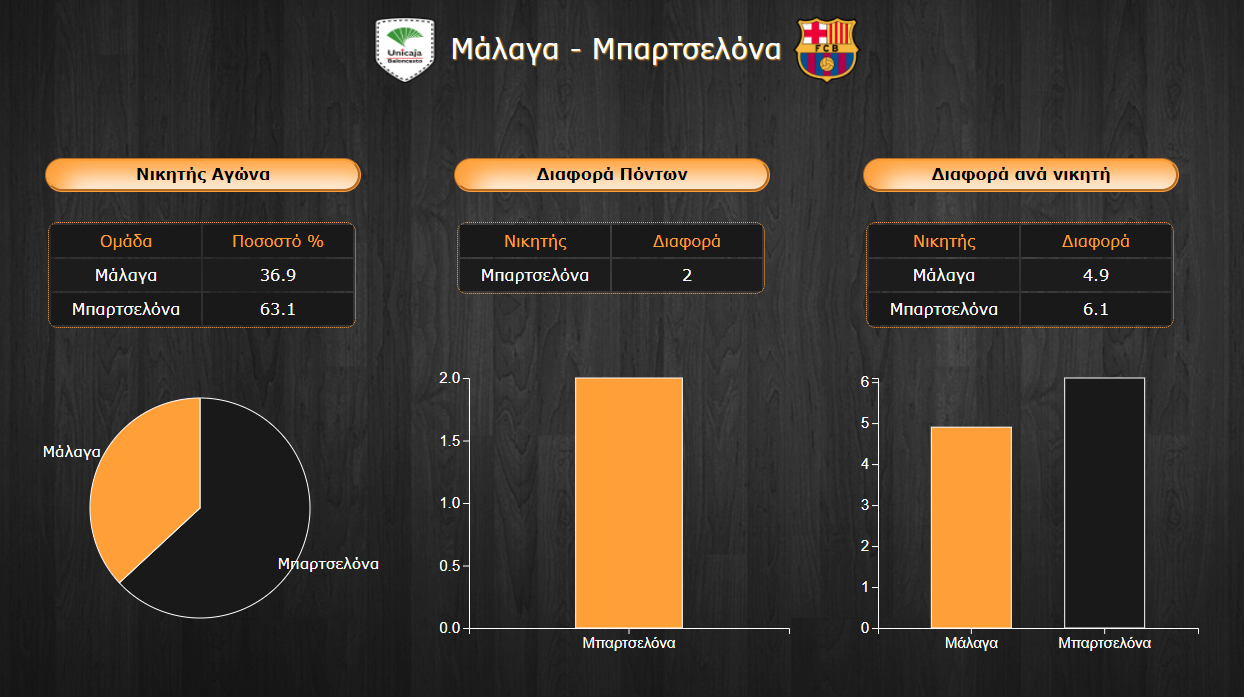 - Η Μπαρτσελόνα παρουσιάζεται ανώτερη της Μάλαγα τόσο στην επίθεση (με 80,7 πόντους έναντι 77,6) όσο και στην άμυνα (79,2 π. παθητικό αντί 81 των γηπεδούχων) με τα ποσοστά να το επιβεβαιώνουν.