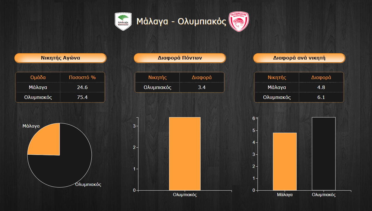 - Η Μάλαγα σκοράρει 78,6 πόντους κατά μέσο όρο με καλύτερο ποσοστό από τα 6,75μ. (35,4%) και δεν αποτελεί σίγουρα έναν εύκολο αντίπαλο εάν ο Ολυμπιακός δεν μπορέσει να παρουσιάσει καλό πρόσωπο και να αξιοποιήσει το βάθος του ρόστερ του. Στα τελευταία παιχνίδια, πέρα από τον άξονα των Σπανούλη-Πρίντεζη-Milutinov και Παπαπέτρου η βοήθεια από το υπόλοιπο ρόστερ είναι ανεπαρκής ή ασταθής και αυτό είναι κάτι που πρέπει να λυθεί άμεσα για να επιτευχθεί το διπλό στην Ισπανία.