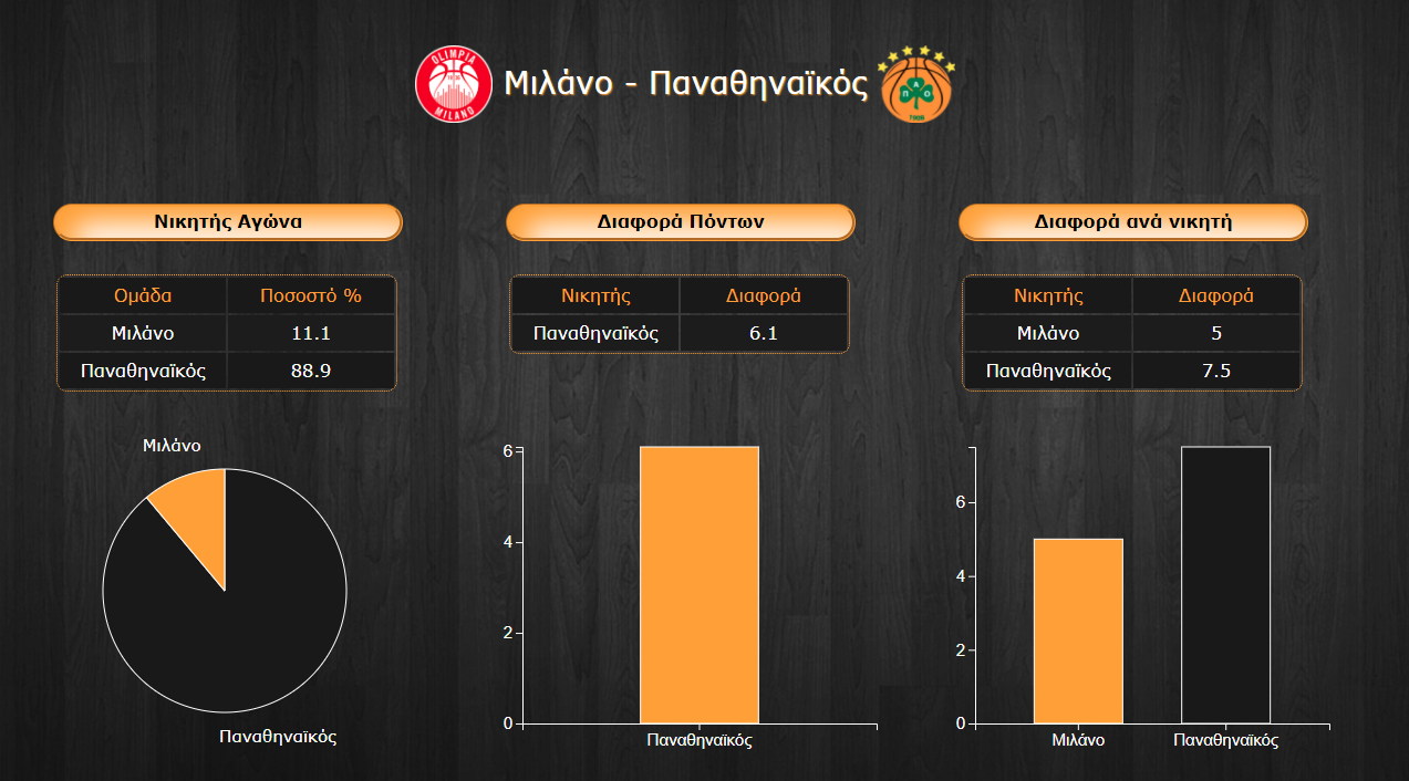 - Οι πρωταθλητές Ελλάδας έχουν το πάνω χέρι στην αναμέτρηση όσον αφορά την αμυντική συνέπεια καθώς έχουν πολύ χαμηλότερο παθητικό με μέσο όρο 76,9 πόντους. Από την άλλη πλευρά, η ιταλική ομάδα έχει κάκιστη αμυντική επίδοση με το παθητικό της να αγγίζει τους 85,5 πόντους. Πιο ειδικά, οι Ιταλοί δέχονται ποσοστά της τάξης του 54,4% στα δίποντα και του 41,5% στα τρίποντα, γεγονός που δίνει ελπίδες στον Παναθηναϊκό ότι μπορεί να απλοποιήσει την αποστολή του αν εκμεταλλευθεί τα σουτ από την περιφέρεια.