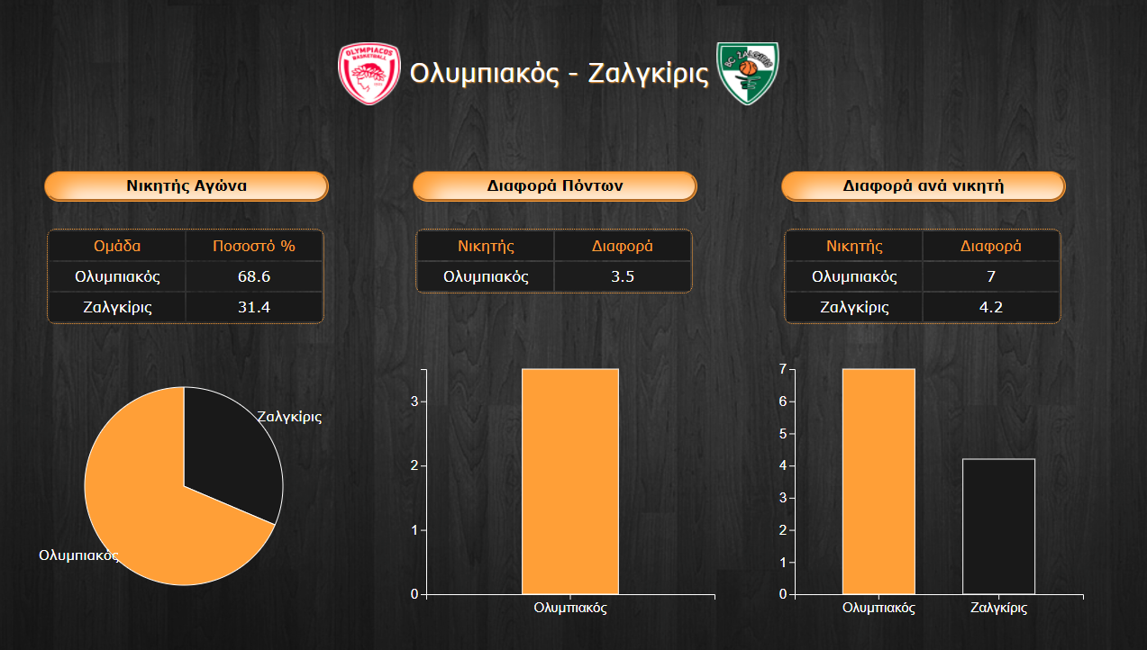 - Η Ζαλγκίρις μοιράζει 3,4 ασίστ περισσότερες ανά παιχνίδι (19,6) από τον Ολυμπιακό ενώ ακόμα παίζει σε ακόμα χαμηλότερες κατοχές (67,3 έναντι 68,3 της ελληνικής ομάδας), γεγονός που αποδεικνύει την άρτια επιθετική της λειτουργία, ενώ δείχνει και την ικανότητα της να παίξει καλά στο σετ παιχνίδι που ακολουθούν οι ερυθρόλευκοι. Ο Ολυμπιακός θα πρέπει να δοκιμάσει να αξιοποιήσει την ποιότητα του ρόστερ του έναντι των Λιθουανών και να παίξει ορθολογικά για να πάρει το πάνω χέρι στην αναμέτρηση.