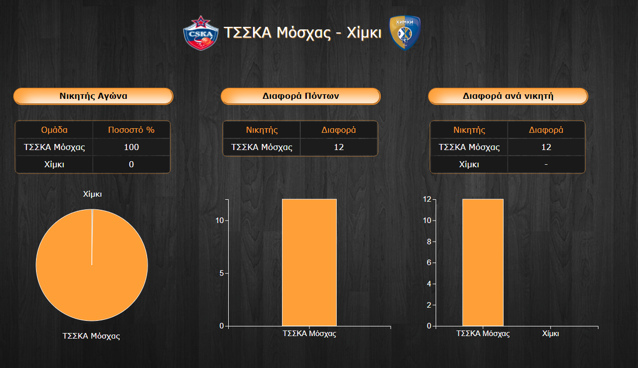 - Η Χίμκι δεν έχει ανταποκριθεί φέτος στα παιχνίδια κόντρα στην ΤΣΣΚΑ στον απαιτούμενο βαθμό γνωρίζοντας στον πρώτο γύρο την ήττα με διαφορά 11 πόντων και στην έδρα της με κατεβασμένα τα χέρια (73-90). Στις δύο αυτές αναμετρήσεις σημαντικό ρόλο έπαιξαν τόσο τα ριμπάουντ (καθώς η Χίμκι επιτρέπει στους αντιπάλους της 4,3 περισσότερα ανά αγώνα) όσο και τα περιφερειακά ποσοστά με την ΤΣΣΚΑ να είναι φέτος εξαιρετική σε αυτόν τον τομέα (42,7%) σε αντίθεση με τη Χίμκι που αν και επιλέγει πολύ πιο συχνά σουτ πίσω από τα 6,75μ. (ο συντελεστής της αναλογικά με τις προσπάθειες για δίποντα δείχνει αυτή την τάση με 1,26 μόλις) έχει αισθητά χαμηλότερα ποσοστά με 35,7%.