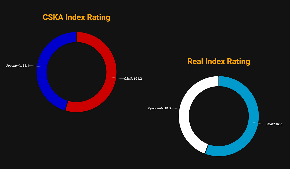 - Οι δύο πολυτροπαιούχες του θεσμού της Ευρωλίγκας/Κυπέλλου Πρωταθλητριών έχουν εξασφαλίσει με το σπαθί τους την πρόκριση στην κορυφαία συνάντηση του ευρωπαϊκού μπάσκετ όπως επιβεβαιώνουν οι επιθετικοί τους δείκτες. Το παιχνίδι ανάμεσα τους αναμένεται τουλάχιστον απολαυστικό καθώς αναμετρώνται οι δύο κορυφαίες επιθετικά ομάδες με τα τριψήφια ranking τους να ηγούνται της σχετικής λίστας στη διοργάνωση. Η ποιότητα και το βάθος των δύο ρόστερ σε συνδυασμό με τη χημεία των δύο ομάδων καθιστούν το παιχνίδι ιδιαίτερα ελκυστικό όσον αφορά το θέαμα με το χαρακτηριστικό και των δύο διεκδικητών να είναι το επιθετικογενές παιχνίδι. Οι Μοσχοβίτες σκοράρουν περισσότερους πόντους σε ίδιες κατοχές (89,2 κατά μέσο όρο έναντι 85,7 των Ισπανών) με τη διαφορά να πιστοποιεί τον τίτλο του θεωρητικού φαβορί στην ομάδα του Δημήτρη Ιτούδη χωρίς αυτό να λέει πολλά καθώς η Ρεάλ δεν δείχνει να υστερεί σε τίποτα όσον αφορά το έμψυχο υλικό έναντι της ρωσικής αρκούδας. Αυτό εξάλλου αποτυπώνεται και στη διαφορά του Index Rating μεταξύ των δύο ομάδων, όπου η εικόνα αντιστρέφεται υπέρ των Ισπανών.