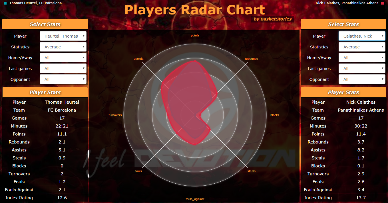 Ο Thomas Heurtel και ο Νικ Καλάθης δίκαια συγκαταλέγονται στους κορυφαίους πόιντ γκαρντ της διοργάνωσης. Ο Γάλλος σε 22,5 λεπτά είναι κομβικός στη δημιουργία της ομάδας του προσφέροντας 11,1 πόντους, 2,1 ριμπάουντ και 5,1 ασίστ αποτελώντας έτσι έναν από τους παίκτες «κλειδιά» της επίθεσης της ομάδας της Βαρκελώνης. Από την άλλη πλευρά, ο Καλάθης έχει ανεβάσει στροφές το τελευταίο διάστημα και αποτελεί μακράν της δεύτερης την πιο αξιόπιστη επιλογή στην οργάνωση του παιχνιδιού του Παναθηναϊκού. Ο Έλληνας γκαρντ που αγωνίζεται κατά οκτώ λεπτά περισσότερα δεν υπερτερεί τόσο σε σκορ με περίπου ίδια απόδοση κάνοντας όμως τη διαφορά σε ασίστ με 8,2 ανά παιχνίδι ενώ επίσης υπερτερεί και σε κλεψίματα με 1,7, αλλά και σε λάθη με 0,9 περισσότερα. Η διαφορά στον χρόνο συμμετοχής αδικεί ίσως τον Γάλλο που υπολείπεται κατά 1,1 μονάδα του Καλάθη, ο οποίος πάντως με τη σειρά του έχει βαρύτερο φορτίο στην οργάνωση της ομάδας του.