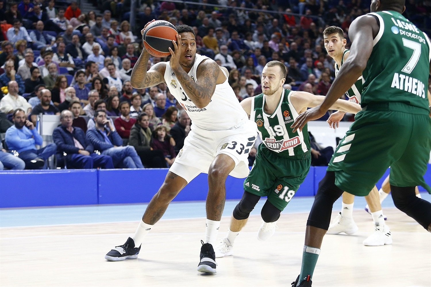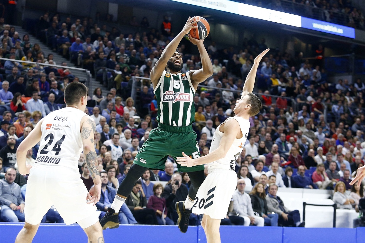 Στην πρώτη αναμέτρηση των δύο ομάδων, για τον 13ο γύρο της φετινής διοργάνωσης, η Ρεάλ δεν συνάντησε καμία δυσκολία και επικράτησε του Παναθηναϊκού στη Μαδρίτη με 89-68, παιχνίδι που αποτέλεσε μάλιστα, όπως είπαμε και παραπάνω, το «κύκνειο άσμα» του Xavi Pascual στον πάγκο του «Τριφυλλιού». Οι ψηλοί της «βασίλισσας» (Ayon και Tavares) έκαναν ό,τι ήθελαν στις δύο ρακέτες και ολοκλήρωσαν την αναμέτρηση με 19 πόντους και 16 ριμπάουντς για 38 μονάδες αξιολόγησης αθροιστικά. Από 'κει και πέρα, οι Causeur και Campazzo σκόραραν 14 και 13 αντίστοιχα, οι Taylor και Thompkins πρόσθεσαν από 8 και οι Rudy με τον Llull από 7, δείχνοντας ακόμα μία φορά το τρομερό βάθος που έχουν οι πρωταθλητές Ευρώπης (και) στο φετινό τους ρόστερ. Ο Randolph, από την άλλη, είχε μία μέτρια βραδιά με 5 πόντους και μόλις μία μονάδα στο σύστημα αξιολόγησης της διοργάνωσης. Από το σύνολο του Καταλανού τεχνικού οι μόνοι που το πάλεψαν κάπως ήταν οι Langford (20 πόντοι, 20 PIR) και Καλάθης (17π., 5 ριμπ., 4 ασσίστς, 16 PIR), με τον Παπαγιάννη να παίρνει για πρώτη (και τελευταία) φορά τόσο μεγάλο χρόνο συμμετοχής (23:23) επί Pascual στον πάγκο και να ολοκληρώνει το παιχνίδι με 8 πόντους, 3 ριμπάουντς αλλά και 4-1 φάουλ για 6 μονάδες ράνκινγκ.