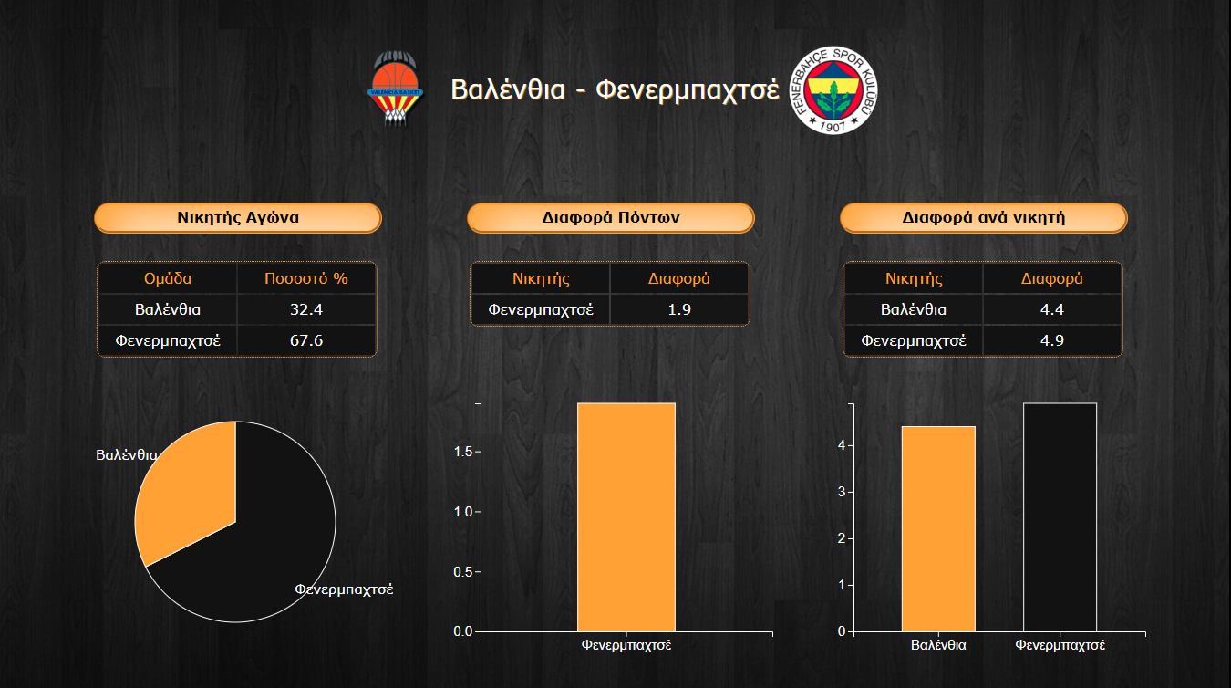 - Στα ποσοστά των δύο ομάδων επιθετικά δεν παρατηρούνται μεγάλες διαφοροποιήσεις όσον αφορά τα σουτ δύο πόντων και τις βολές, αλλά στα τρίποντα υπάρχει προβάδισμα της κυπελλούχου Τουρκίας που πλησιάζει το 40% πίσω από τα 6,75μ. έναντι του 36% της Βαλένθια η οποία επιτρέπει μάλιστα και λίγο υψηλότερο ποσοστό στους αντιπάλους της στα σουτ τριών πόντων με 38,5% κατά μέσο όρο έναντι 36,5% των Τούρκων.