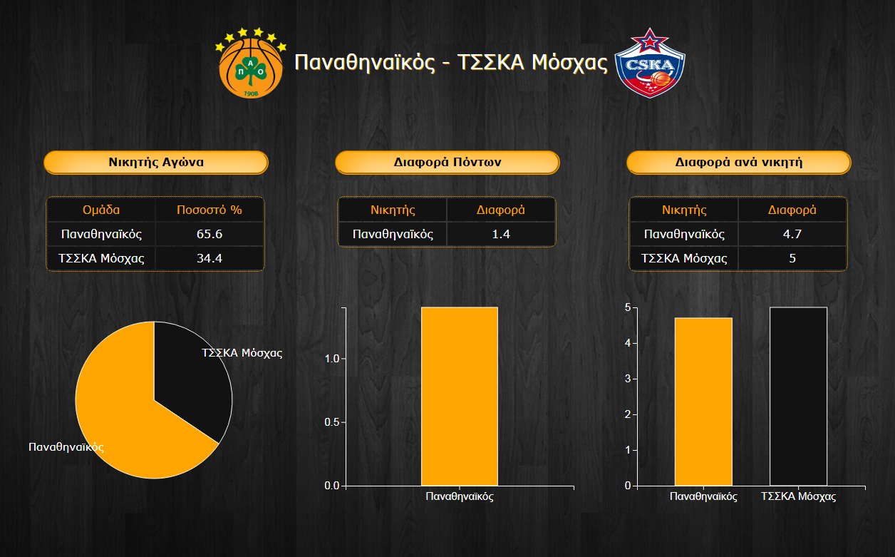 -Οι Ρώσοι δείχνουν γενικά καλύτερο πρόσωπο αμυντικά συγκριτικά με τον Παναθηναϊκό όπως δείχνουν οι μόλις 77,4 πόντοι που επιτρέπουν κατά μέσο όρο στους αντιπάλους τους έναντι των 86,5 που είναι το παθητικό της ομάδας του Pitino. Κάπως έτσι, παρά την υπεροχή των πράσινων σε απόλυτους αριθμούς όσον αφορά την παραγωγή πόντων, οι Μοσχοβίτες προηγούνται με 4,1 μονάδες στο σύνολο ενεργητικού-παθητικού.
