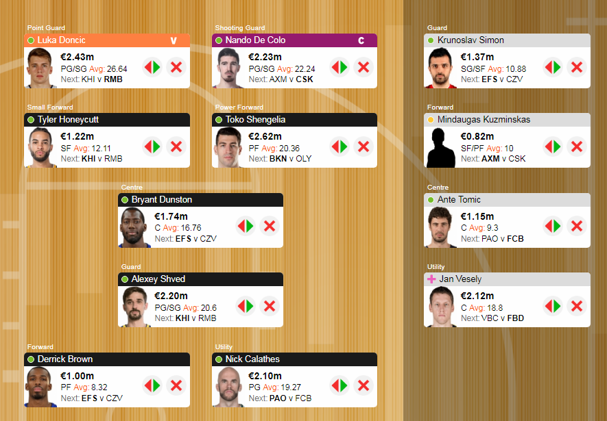 Ενόψει της 17ης στροφής του παιχνιδιού, υπάρχουν κάποια δεδομένα που επηρεάζουν εξ' αρχής το πλάνο της ομάδας. Ο τραυματισμός του Vesely και η δεδομένη απουσία του από το παιχνίδι με την Βαλένθια, αλλά και η ...φαντασιακή κοιλιά του Jankunas φέρνουν επί της ουσίας στην πόρτα της εξόδου τους δύο παίκτες. Το budget της ομάδας βέβαια είναι μεγάλο, 21,2Μ κι έτσι ο ψηλός της Φενέρ ίσως αποτελέσει εσωτερική αλλαγή ...πολυτελείας, μιας και υπάρχει και ο Vincent Poirier στην ομάδα, σε θέση C και με μια εξαιρετική τιμή πώλησης έχοντας ισορροπήσει.