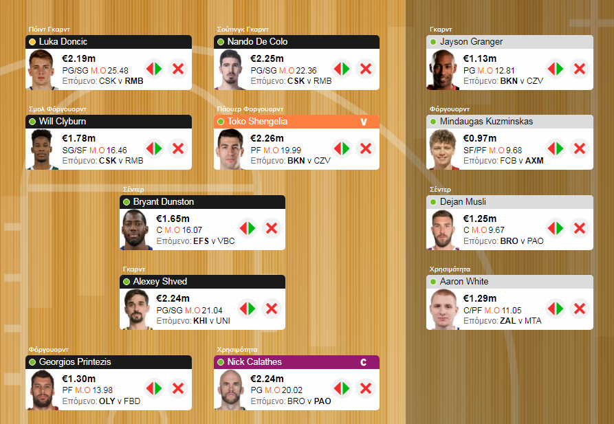 Η τρίτη αλλαγή λοιπόν, θα έχει να κάνει με τη θέση του center. Ένα σενάριο θα ήταν η αντικατάσταση του ισορροπημένου επί της ουσίας Musli με τον Ante Tomic, που αναθάρρησε ξανά στα δύο τελευταία παιχνίδια, με σκορ της τάξης του 20+ κι έτσι έχει αποκτήσει στάτους υποτίμησης. Η αλλαγή αυτή δεν είναι άσχημη, αλλά μπορώ να ζήσω και με τον Σέρβο στο ρόστερ, εξάλλου δεν συντρέχει κάποιος εξαιρετικός λόγος αλλαγής. Το παιχνίδι με τον Παναθηναϊκό είναι κομβικό για το φαντασιακό του μέλλον, είτε κάνει καλή εμφάνιση (οπότε συνεχίζει), είτε συνεχίσει στα πιο μέτρια σκορ, οπότε θα πρέπει να αποχωρίσει. Για να μην υπάρξει νέο ...πισωγύρισμα λοιπόν και πιστεύοντας στις φαντασιακές ικανότητες του παίκτη, θα παραμείνει αυτή την αγωνιστική στην ομάδα.