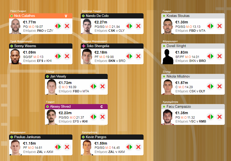 Από εκεί και πέρα βέβαια δεν έλειψαν και οι αστοχίες, με τον Clyburn που ήταν υποψήφιος για πάγκο να πραγματοποιεί τη χειρότερη φετινή του εμφάνιση μέσα στην Φενέρ (η οποία κατάφερε να χάσει με κακό Clyburn και μέτριο, αλλά παραδόξως winner, De Colo), ενώ και η επιλογή του Weems δεν απέφερε τα αναμενόμενα, όντας άστοχος μέσα στην Μπάμπεργκ, αλλά ο Αμερικανός είχε γίνει ήδη της ...μόδας, επομένως δεν θεωρώ ότι υπήρξε σημαντική ζημιά από εδώ. Να πούμε και του στραβού το δίκιο πάντως, το DNP του Shengelia μάλλον ωφέλησε την ομάδα, αφού έτσι μπήκε στο παιχνίδι και ο Wright, παίκτης από τον οποίο είχαν προτιμηθεί Clyburn και Weems, ο καθένας για τους λόγους του.