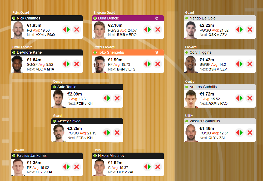 Τελικά ποιος θα προτιμηθεί; Δίνω ελαφρύ προβάδισμα σε Tomic αντί De Colo, λόγω ...μεγαλύτερης αναγκαιότητας (η ΤΣΣΚΑ μπορεί να κερδίσει και χωρίς τον Γάλλο), όπως και στον Σπανούλη αντί του Pangos, λόγω έδρας (βάσει του Kill Bill). Από εκεί και πέρα, στον ...τελικό που προκύπτει, θα προτιμήσω την ευκολία με την οποία δημιουργεί ράνκινγκ ο σέντερ της Μπαρτσελόνα, από τον προφανή (ειδικά όσο υπάρχουν απουσίες) στόχο της άμυνας της Ζαλγκίρις, για τον οποίο η έλλειψη του ...απόλυτου βαθμολογικού κινήτρου με προβληματίζει για να αντικαταστήσω τον De Colo.