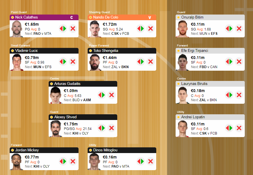 Το δίλημμα είναι αρκετά έντονο, μέχρι που δοκιμάζω να δω σχηματικά την ομάδα με το ρισκαδόρικο σενάριο. Κατά λάθος, στην αγορά συναντώ κι έναν άλλο παίκτη που μπορώ να πάρω ως utility. Ο λόγος για τον Toko Shengelia, στα 1,44. Επίσης υποτιμημένος, επίσης δύσκολο ματς με την Ζαλγκίρις, αλλά πιο αξιόπιστος συνολικά από τον James. Κάπως έτσι, πιθανώς η πλάστιγγα να γέρνει υπέρ του ρίσκου.