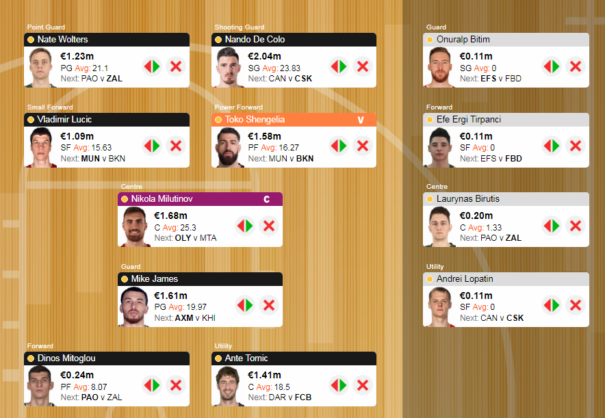 Ο Davies πάντως δεν αποτελεί και το μεγαλύτερο όνομα του Fantasy αυτή την στιγμή (αν και λόγω PF θα παίξει κομβικό ρόλο στο φετινό παιχνίδι). Αυτός είναι ο Shved, ο οποίος έχει ακόμα σχετικά προσιτή τιμή για τις δυνατότητες σκορ που προσφέρει και σίγουρα θα φτάσει ψηλότερα. Ο Ρώσος μπορεί να έρθει στη θέση του Καλάθη, η αλλαγή του Caloiaro με τον Kane να παραμείνει ως έχει και στην τρίτη αλλαγή να υπάρξει αντιστροφή της κίνησης που είχε πραγματοποιηθεί μια βδομάδα πριν. Gudaitis στη θέση του Black λοιπόν, σε μια αλλαγή που θυμίζει rotation (με τη Μιλάνο να υποδέχεται την Χίμκι και την Μακάμπι να δοκιμάζεται στο ΣΕΦ), αλλά έχει, μάλλον και πιο μακροπρόθεσμο ορίζοντα. Εδώ υπάρχει γενική ενίσχυση σε δύο θέσεις, έρχεται το μεγάλο όνομα, αλλά παραμένει και ο Μήτογλου. Όχι ότι δεν αποδίδει το παλικάρι, ίσα ίσα.