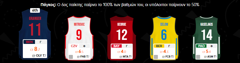 Λεωνίδα Κασελάκη, που είναι ένας από τους ελάχιστους παίκτες της θέσης που μπορεί να φέρει ράνκινγκ από τα 5,4 credits που κοστίζει. Υπάρχει μεγάλη λειψανδρία σε φθηνούς παίκτες (πλην γκαρντ), επομένως η απόκτησή του είναι σχεδόν επιτακτική.