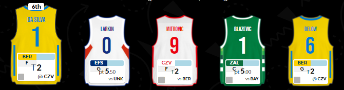 Από εκεί και πέρα, προβληματισμός υπάρχει για τα σκορ των Jones και κυρίως του Larkin, με τους Da Silva και Mitrovic να μπορούν να τους αντικαταστήσουν. Εδώ θα μπορούσαν να πραγματοποιηθούν δύο εσωτερικές αλλαγές, μία, ή ακόμα και καμία, αν και στο μικρό, αλλά εντυπωσιακό ιστορικό του ψηλού της Άλμπα δεν με αφήνει να τον ...αφήσω απ' έξω. Έτσι λοιπόν, ο Da Silva θα αντικαταστήσει τον Larkin, ο οποίος ήρθε με μεγάλες περγαμηνές, αλλά τελικά θα δώσει μόνο 5,5 πόντους στην ομάδα.