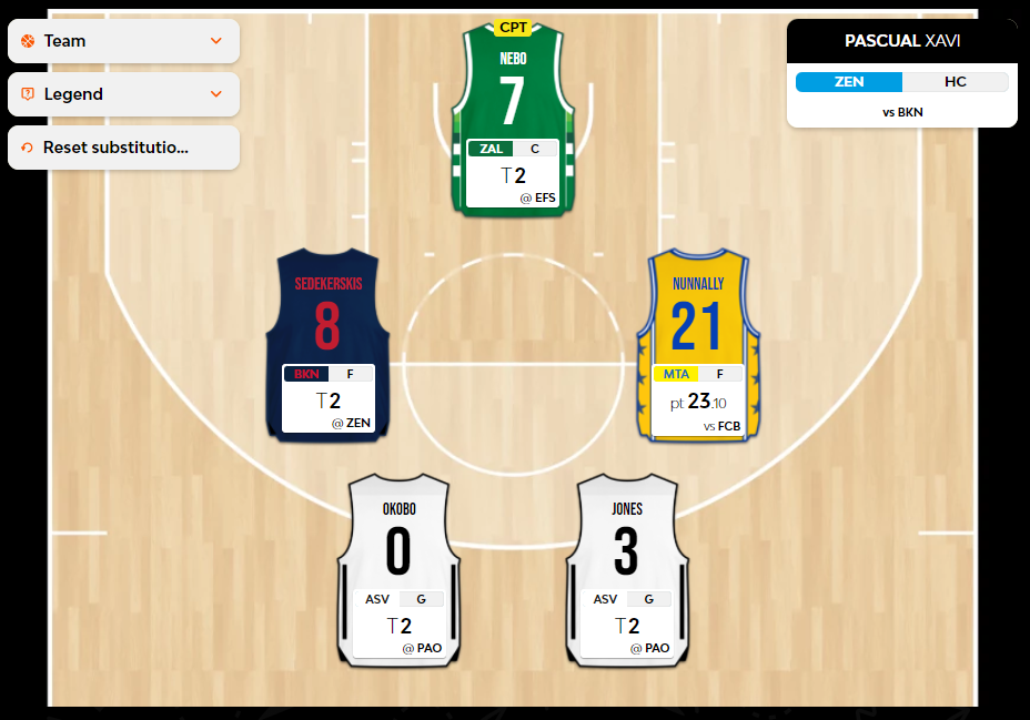 Ευτυχώς, μου είχε διαφύγει τελείως η παρουσία του Nebo στην πεντάδα και η δυνατότητα να επιλέξω το σέντερ της Ζαλγκίρις ως αρχηγό. Ο Αμερικανός είναι εξίσου σταθερός με τους δύο γκαρντ της Βιλερμπάν και η παρουσία του με βγάζει από το ...γαλλικό δίλημμα, το οποίο θα μπορούσε να αποδειχθεί σωστό ή λάθος βάσει μόνο του αποτελέσματος. Με την Εφές να παρουσιάζεται αρκετά ευάλωτη (και) στο 5 σ' αυτές τις πρώτες αγωνιστικές και τον Nebo ουσιαστικά μόνο του στη θέση αυτή για τους Λιθουανούς, με τον Blazevic απλά να συμπληρώνει, η επιλογή του μοιάζει αρκετά βολική για την ομάδα αυτή την στιγμή.