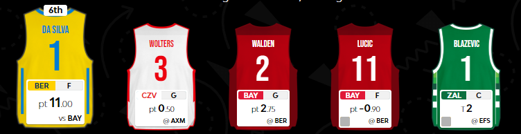 Με τους δύο παίκτες να μένουν χαμηλά, το μέτριο σκορ του Da Silva (11) φαίνεται εξαιρετικό, δεδομένης και της τιμής του, με τον Γερμανό πάντως να αθροίζει τελικά παρόμοιο σκορ στις δύο τελευταίες αγωνιστικές (28) με τον Mitrovic, που έκανε πάρτυ χθες στο Μιλάνο με 27 Index Rating, αν και η τιμή του δεύτερου είναι αυτή που αναμένεται να εκτιναχθεί αυτή την αγωνιστική και παίρνοντας μάλιστα χρόνο και στο 4, ξαναμπαίνει στο προσκήνιο για να επανέρθει στην ομάδα, μετά από μια τέτοια εμφάνιση. Στο ίδιο ματς, ο συμπαίκτης του, Wolters, πραγματοποίησε την πρώτη του κακή φετινή εμφάνιση με μόλις 1 μονάδα ράνκινγκ, έχοντας μεταξύ άλλων 2 πόντους και 4-0 φάουλ κι έτσι το πρόσημο του ερχομού του στη θέση του αμφίβολου Walden, μια αγωνιστική πριν, δεν μπορεί να κριθεί απόλυτα θετικά.