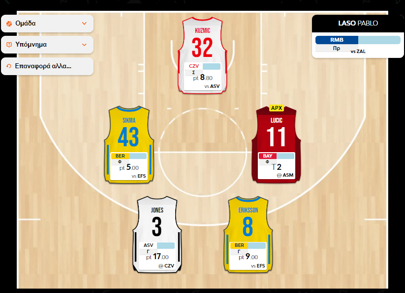 Με τον Blazevic να έχει και κάποια αρνητικά σκορ πλέον στο ιστορικό του, δεν με ενθουσιάζει η παρουσία του στη βασική πεντάδα, αν και σε περίπτωση που το ματς κριθεί από νωρίς, ίσως ανταλλάζει ράνκινγκ με τον Vukcevic. Στην πράξη βέβαια, αν πούμε ότι το μίνιμουμ σκορ του είναι το -5 και το μάξιμουμ το 15, τότε η διαφορά πόντων στην ομάδα είτε μπει βασικός είτε αναπληρωματικός, σε σχέση με τον Sikma, θα είναι 5 πόντοι, επομένως δεν χρειάζεται τόση πολλή σκέψη. Θα ήθελα για τη χαρά του παιχνιδιού και για ένα μεγαλύτερο ενδιαφέρον μέσα στο ματς να τον έχω βασικό, όμως η λογική λέει πως δεν αξίζει το ρίσκο απέναντι στα θηρία. Ας αποδώσουν βέβαια Lucic και Laso όπως ...πρέπει και ο Blazevic θα είναι το μικρότερό μου πρόβλημα.