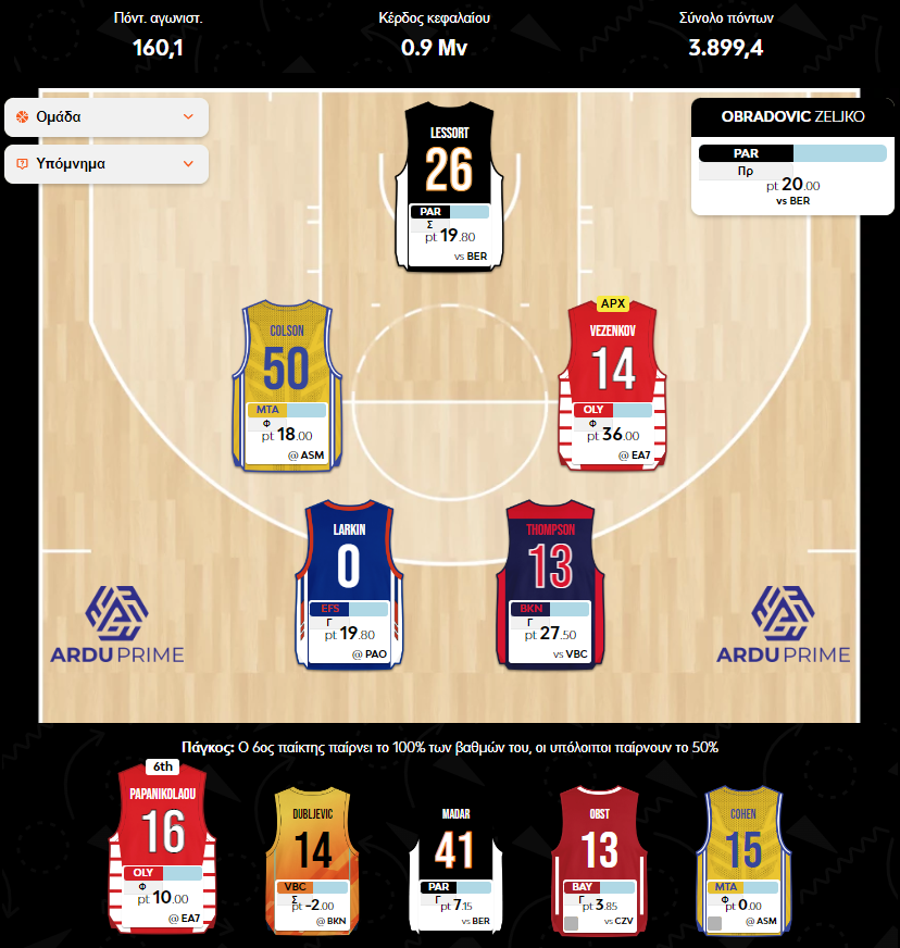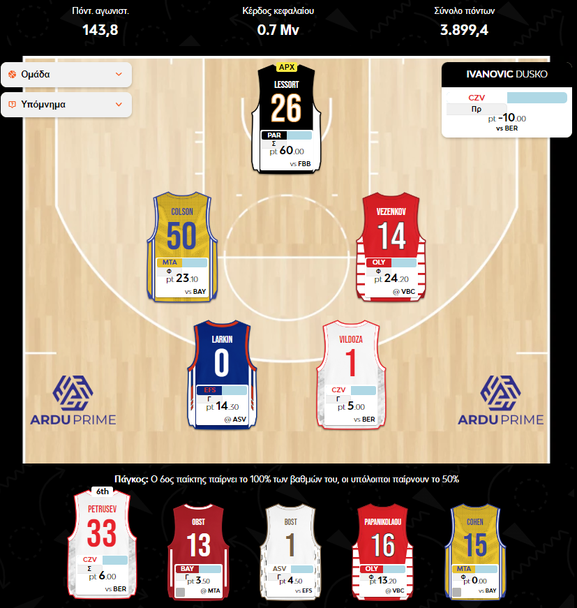 Θέση: 1.376 (πτώση 37 θέσεων από την 24η αγωνιστική)