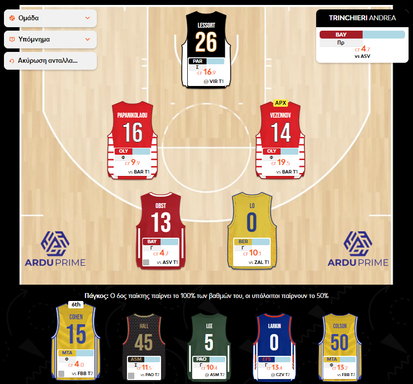 Εδώ ο Αστέρας μας “πρόδωσε”, παθαίνοντας καθίζηση στο δεύτερο ημίχρονο με την Άλμπα. Petrusev 6, Vildoza 5 και Ιβάνοβιτς (-10) στοίχισαν στην ομάδα, που πήρε το μάξιμουμ από τον αρχηγό (Lessort 60), αλλά άφησε τον Παπανικολάου στον πάγκο, αξιοποιώντας μόνο τους 13,2 από τους 26,4 πόντους που σημείωσε (με τον Αστέρα να ζημιώνει έμμεσα σ’ αυτό). Η ομάδα υπέστη μικρή βαθμολογική πτώση, παρά το οικονομικό κέρδος.