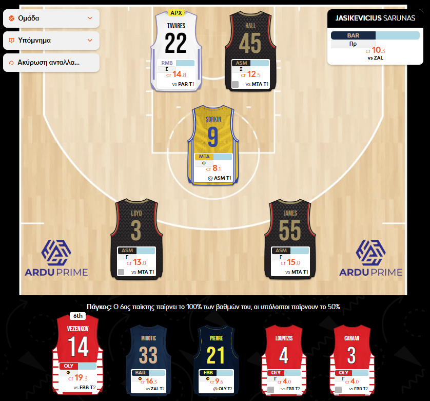 Το αρχικό μου σχέδιο περιλάμβανε την παρουσία των ελπιδοφόρων Avramovic και Lekavicius, αλλά ειδικά για τον δεύτερο που αγωνίζεται στο Turn 2 ίσως είναι λίγο μεγαλύτερο ρίσκο να δαπανηθούν 6,7 κρέντιτς, από την στιγμή που δύσκολα θα περάσει βασικός. Έτσι, μπορώ για παράδειγμα να προτιμήσω τον Canaan, που παρότι αδιάφορος φαντασιακά, είχε καλή παρουσία με την Φενέρ στην Regular Season.