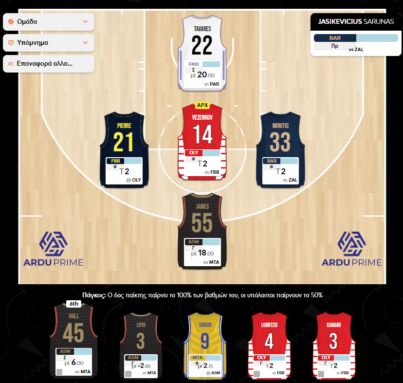 Πλέον, μόνο Tavares και James δικαιούνται θέση βασικού στην ομάδα, κάτι το οποίο ομολογώ δεν περίμενα, καθώς το βάθος στον πάγκο έχει μειωθεί και δεν υπάρχουν επί της ουσίας αξιόπιστοι παίκτες να συμπληρώσουν την απαιτούμενη εξάδα. Προφανώς Vezenkov, Mirotic, Pierre περνούν βασικοί, όμως από εκεί και πέρα προκύπτει το ...λυπηρό δίλημμα Hall (6) ή Canaan και κάπου εδώ θυμάμαι έναν Lekavicius που λογικά δεν θα χωρούσε στο βασικό σχήμα, γιατί ένας εκ των Loyd, Hall, Sorkin θα έπρεπε να κάνει ένα διψήφιο σκορ. Με τον Rudy μάλιστα να σημειώνει ίδιο και μεγαλύτερο σκορ από τον Sorkin (6), τότε φαίνεται για την ώρα πως άλλη μια επιλογή πήγε λάθος.