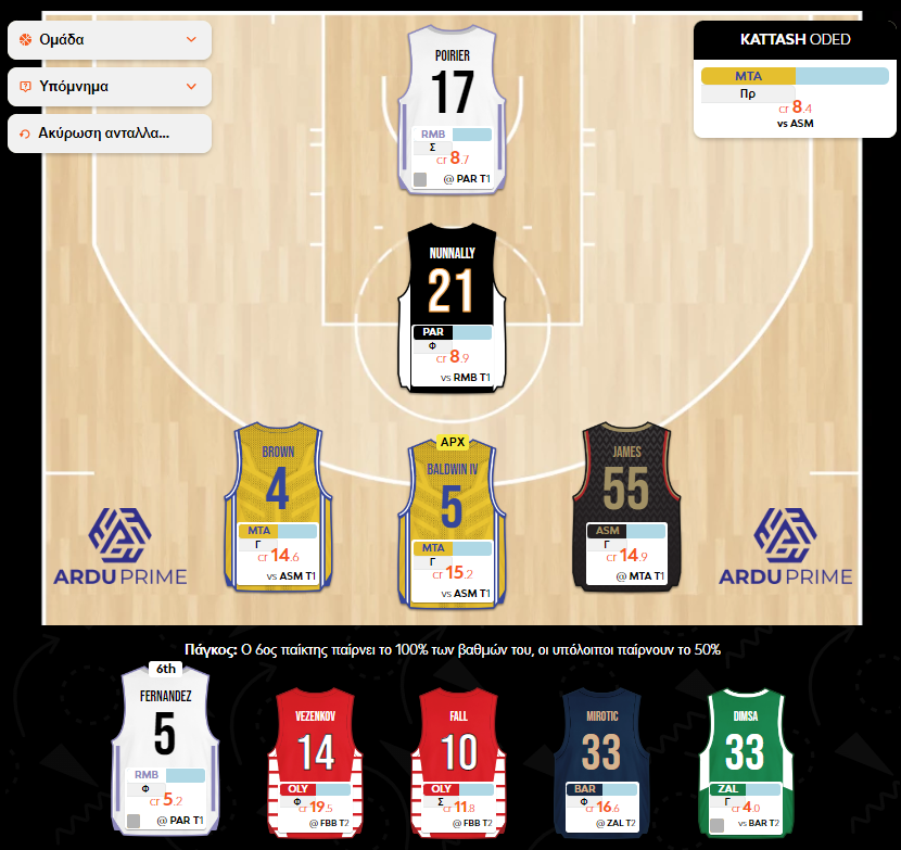 Πλέον μπορώ να αναβαθμίσω τον Avramovic σε κάτι καλύτερο, η αλήθεια είναι όμως τίποτα προσιτό δεν με ενθουσιάζει. Αν όμως θυσιάσω τον Pierre, για τον Rudy, λόγω Turn 2 και Turn 1, στη θέση του γκαρντ της Παρτιζάν μπορεί να έρθει ο Mike James.