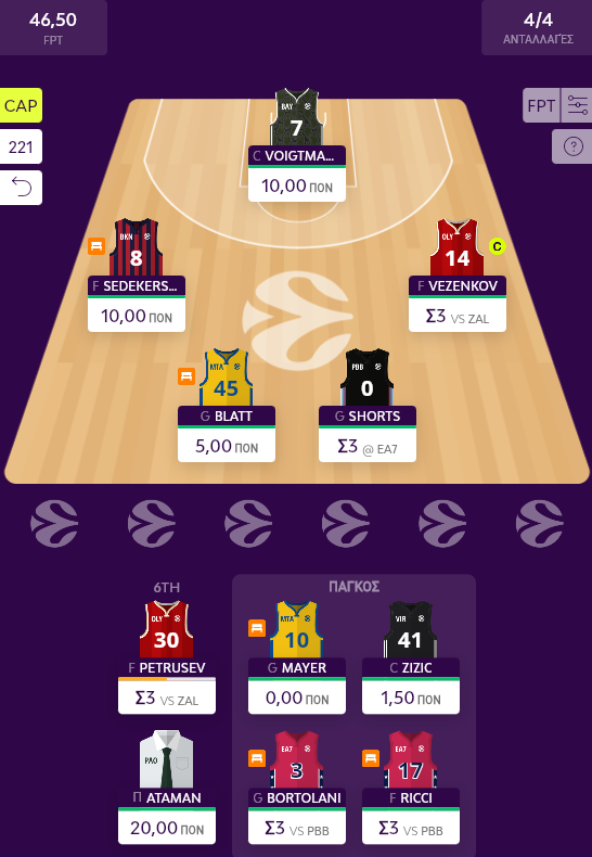 Σ’ όλα αυτά βέβαια έρχεται να προστεθεί και η ίωση του Petrusev, για τον οποίο λέγεται ότι θα αποφασιστεί η συμμετοχή του στο ματς την τελευταία στιγμή. Ο Σέρβος μπορεί να κρατήσει έτσι κι αλλιώς τη θέση του στο βασικό σχήμα της ομάδας, με τον ανταγωνισμό να είναι μηδαμινός, ωστόσο αν βγει σίγουρο DNP στη θέση του θα περάσει ο Ricci για να συνοδεύσει στους έξι βασικούς τους Vezenkov, Shorts, Voigtmann, Sedekerskis και Blatt (!).