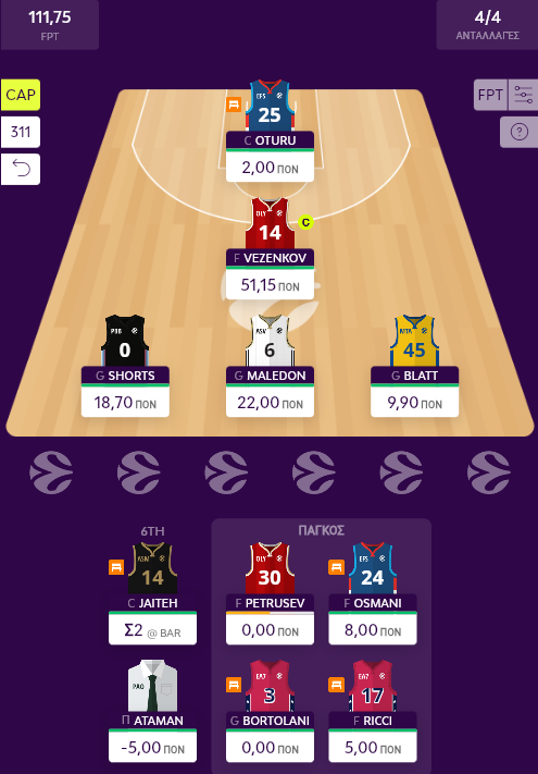 Τέλος, τα νέα δεν ήταν ευχάριστα από το ματς της Μακάμπι με την Εφές, πλην του Osmani φυσικά κι αυτό γιατί ο Oturu πρόλαβε να παίξει μόλις 6 λεπτά για να αποχωρήσει τραυματίας (έτσι κι αλλιώς ο Poirier ξεκίνησε βασικός και πήρε τη μερίδα του λέοντος στο ματς), κάτι που φυσικά κατέστρεψε την πρώτη αλλαγή της ομάδας, τόσο σε ράνκινγκ, όσο και σε κρέντιτς, αλλά ακόμα και τακτικά, με τη σοβαρή πιθανότητα της ανάγκης εκ νέου αλλαγής.