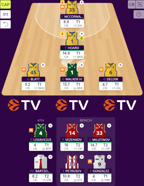 Ο Petrusev αποτελεί ούτως ή άλλως υπερπολύτιμο κομμάτι για την επερχόμενη αγωνιστική των δύο μόνο αγώνων στο Turn 2. Εύλογα και οι Vezenkov και Milutinov παραμένουν στο ρόστερ, άλλωστε ήταν κι αυτός ένας λόγος που διατηρήθηκαν σ' αυτό την προηγούμενη εβδομάδα κι εδώ μάλλον θα κλείσει η ομάδα για το Turn της Τετάρτης, αφήνοντας έναν τυπικό της παίκτη, όπως ο Gonzalez πχ, εξ αρχής στον πάγκο.