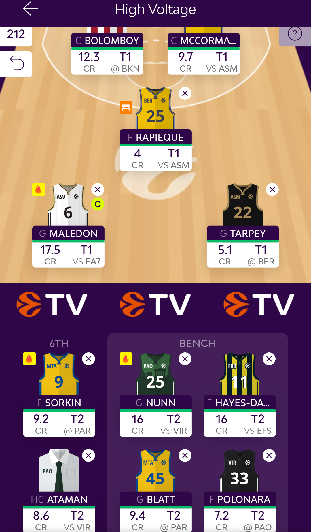 Έτσι, το ρόστερ της High Voltage για το Turn 1 της 19ης αγωνιστικής του παιχνιδιού θα έχει, πιθανώς, ως εξής: