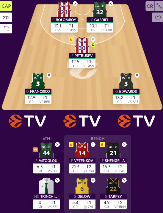 Μεγάλη ευθύνη γι' αυτό βέβαια φέρει η αρχηγική εμφάνιση του Vezenkov με την Εφές, προσφέροντας 56,1 πόντους από 34 μονάδες ράνκινγκ, ενώ το δίδυμο ψηλών του Αστέρα ήταν απολαυστικό στο ντέρμπι με την Παρτιζάν, με τον Petrusev να αποδεικνύει για άλλη μια φορά ότι αποτελεί τον πιο υποτιμημένο παίκτη της αγοράς με 27,5 φαντασιακούς πόντους και τον Bolomboy να εδραιώνει το στάτους του στο παιχνίδι με τους δικούς του 23,1.