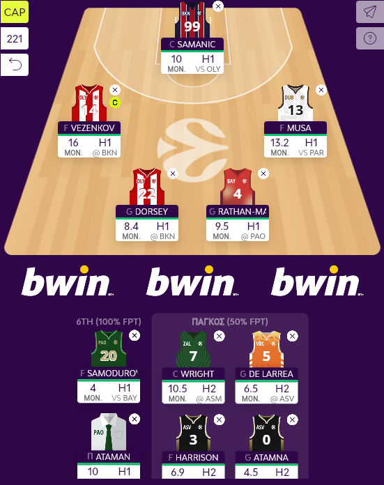 Όχι τόσο βέβαια για να μην αρχίσουν τα διλήμματα και οι συνδυασμοί. Διαχρονικό πουλέν της ομάδας είναι ο Vladimir Lucic που ξεκινά από την προνομιακή τιμή των 8,4 κρέντιτς και η πρώτη εικόνα του είναι σίγουρα ενθαρρυντική. Το καλό είναι ότι ο Σέρβος γενικά "χωράει" οικονομικά στην ομάδα, όχι όμως και σε αριθμό spots, αφού είτε ο Harrison είτε ο Samodurov θα αποχωρήσουν, ενώ το κακό νέο είναι η εκκίνηση του ΟΑΚΑ και η ταυτόχρονη παρουσία του Rathan-Mayes στο ρόστερ. Lucic, Rathan-Mayes, Samanic, H. Diallo, Forrest είναι όλες πολύ ενδιαφέρουσες περιπτώσεις, αλλά δεν μπορούν να μπουν όλοι μαζί στην πρεμιέρα.