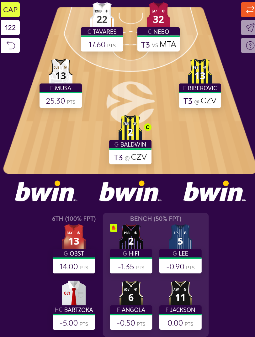 Στη σούμα τώρα, στις δύσκολες καταστάσεις δεν υπάρχουν δύσκολες αποφάσεις. Όλοι οι αρνητικοί (Hifi, Angola, Lee) στον πάγκο και στη θέση τους περνούν οι τρεις διαθέσιμοι παίκτες του Turn 3, Baldwin, Biberovic και Nebo. Οι παίκτες αυτοί θα πρέπει να ανταποκριθούν σε κάθε προσδοκία μπας και σωθεί τίποτα από την αγωνιστική αυτή και κυρίως ο Baldwin βέβαια, που θα είναι ο αρχηγός της ομάδας. Το ρίσκο στην έδρα του Ερυθρού Αστέρα υπάρχει, αν και το ιστορικό του γκαρντ της Φενέρ στα “εκτός” φέτος είναι τέτοιο που διακόπτει κάθε εναλλακτική συζήτηση για το περιβραχιόνιο.