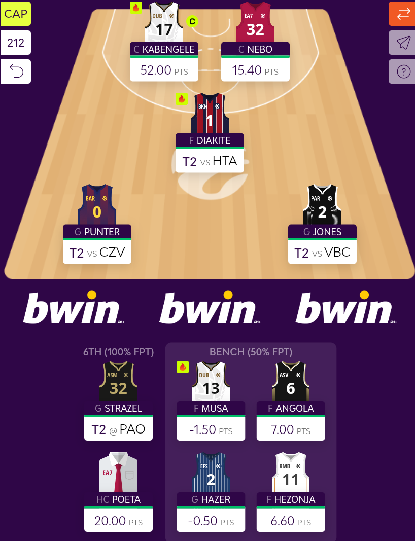 Το ένα έχει να κάνει με τη μοναδική θέση του φόργουορντ, εκεί που υπάρχει ο Hezonja (13,2), με τον Angola να βρίσκεται εξ αρχής στη θέση του 6ου παίκτη. Θα καταφέρει ο Diakite να βγάλει μεγαλύτερο σκορ από τον Κροάτη;