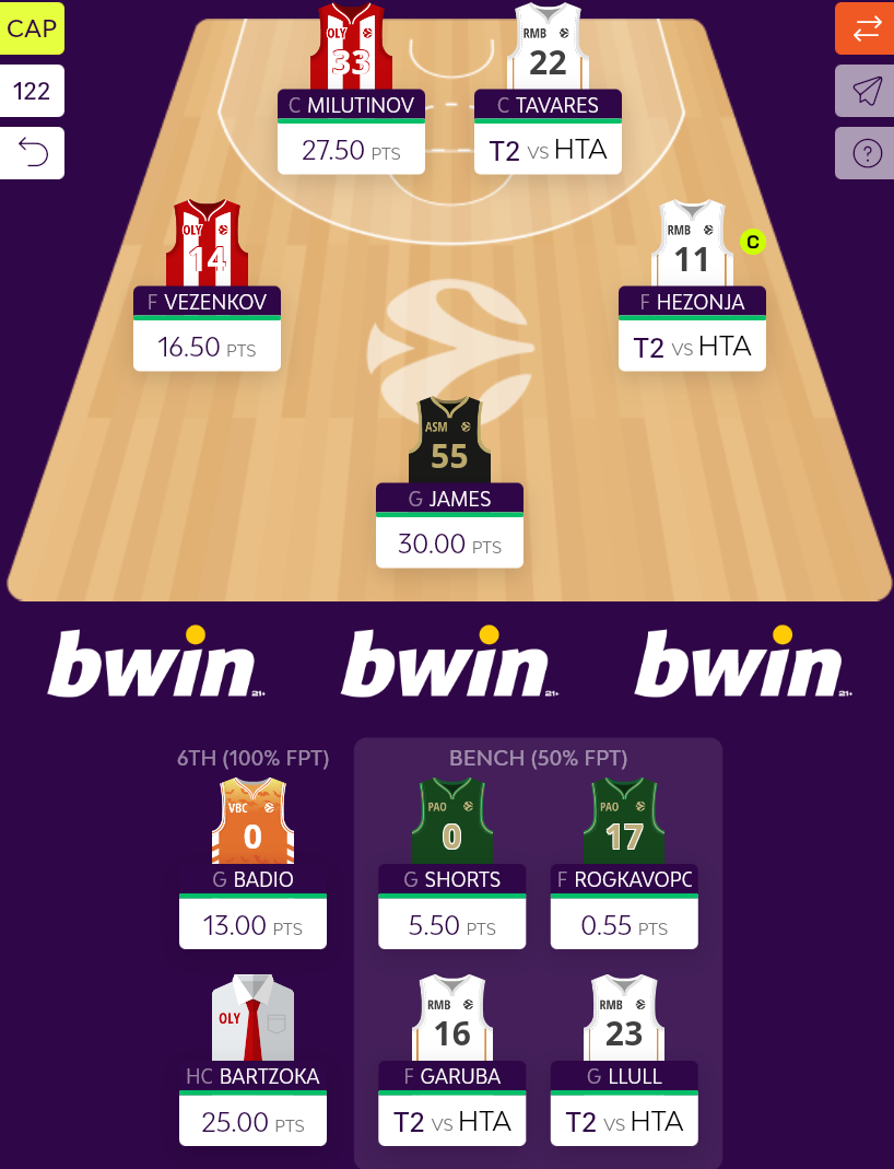 Τέλος, ο Ολυμπιακός ανέβασε στροφές και ψυχολογία στη διάρκεια του ματς και κατάφερε να κερδίσει με μεγάλη διαφορά την αξιόμαχη Μονακό, με τους 21 πόντους διαφοράς να έρχονται στο τέλος και να χαρίζουν έτσι 25 φαντασιακούς πόντους στον Μπαρτζώκα και την ομάδα μας.