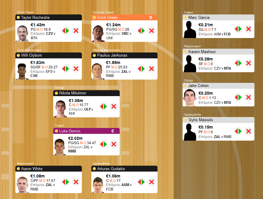 Από την ομάδα, Doncic, Green, Milutinov και Rochestie παραμένουν σίγουρα, οι δύο πρώτοι για ευνόητους λόγους, ενώ οι άλλοι δύο μπορεί να μην είναι το ίδιο εντυπωσιακά υποτιμημένοι, αναμένεται όμως να ανεβάσουν κι άλλο την αξία τους, δεν είναι ακόμα ιδιαίτερα ακριβοί (ειδικά ο σέντερ του Ολυμπιακού) και αγωνίζονται εντός έδρας.