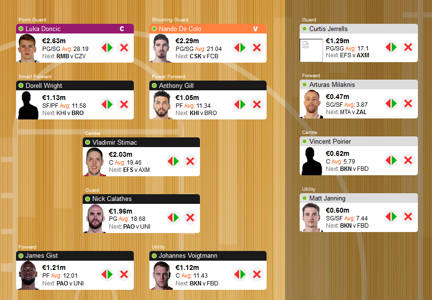 Όσον αφορά τον αρχηγό; Προφανώς το χρίσμα δεν μπορεί να πάει σε κάποια άλλη θέση από τους γκαρντ. Doncic, De Colo και Calathes αποτελούν εξαιρετικές επιλογές. Παρόλο που το ματς με τον Ερ. Αστέρα μπορεί να αποδειχθεί πολύ εύκολο και ο χρόνος του Σλοβένου να είναι μειωμένος, θα προτιμήσω τον ίδιο, ξανά, ως captain της ομάδας ως τον πιο σταθερό παίκτη εκ των τριών, μέχρι τώρα. Εξάλλου, το ίδιο θα μπορούσε να συμβεί και με τον Καλάθη, ενώ ο De Colo, που αντικειμενικά ίσως είναι η καλύτερη δυνατή επιλογή, δείχνει κάποιες φορές πιο "θνητός", όπως στον αγώνα με την Μάλαγα, τη στιγμή που ο Rodriguez έχει πάρει το όπλο του. Σε κάθε περίπτωση, θεωρώ πως τη 10αγωνιστική παίζει σημαντικότερο ρόλο η επιλογή αρχηγού, σε σχέση με άλλες φορές.