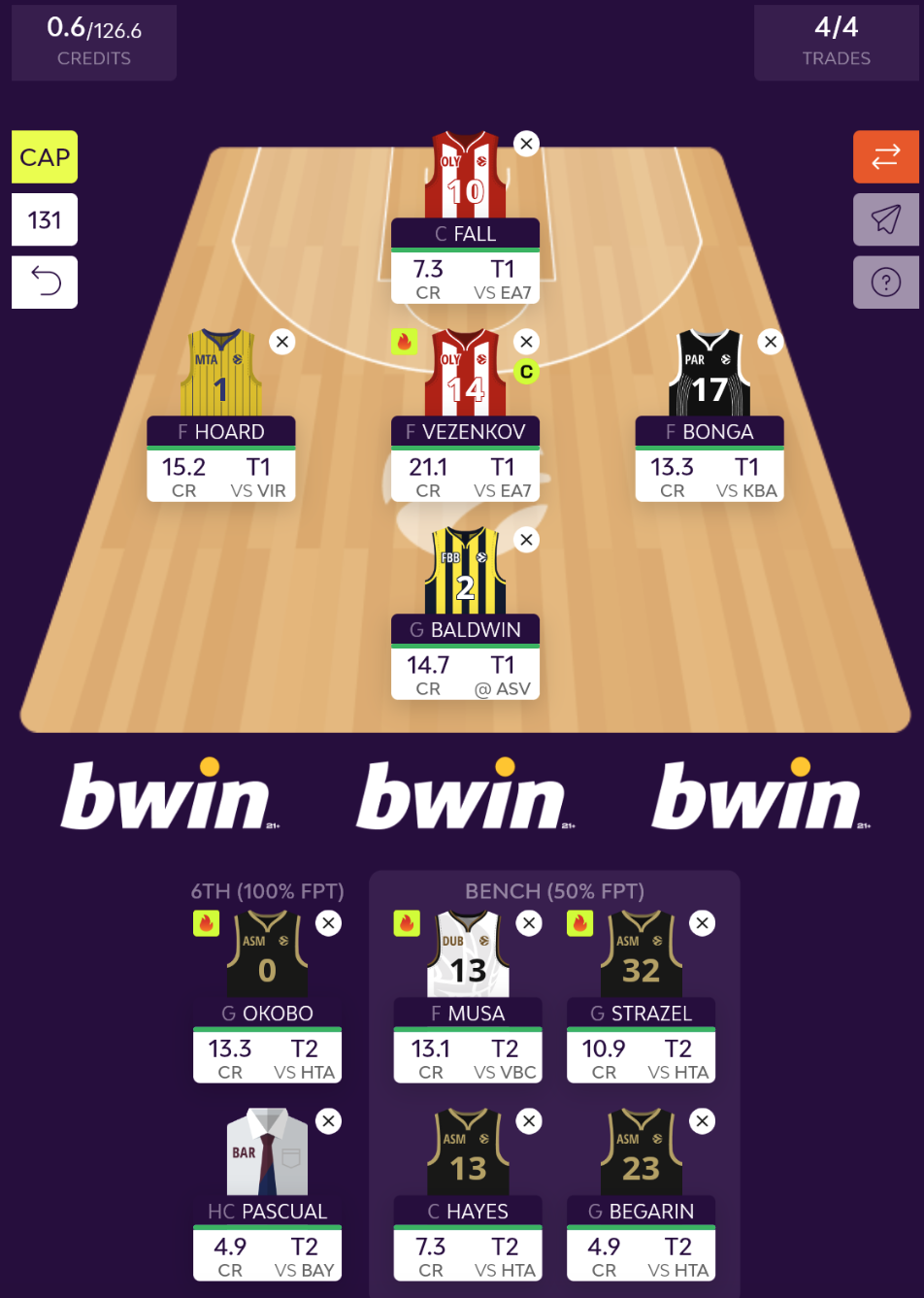 Με σύστημα 1-3-1 και αρχηγό τον Sasha Vezenkov θα ξεκινήσει η SK ROI το Τ1 της τελευταίας αγωνιστικής, ενώ για το Τ2 βρίσκεται σε αναμονή η μισή Μονακό και ο Musa.