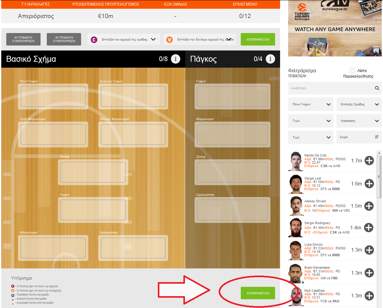 Φροντίστε κάθε φορά που προχωράτε σε αλλαγές να πατάτε την "αποθήκευση" που υπάρχει παραδίπλα. Αν δεν την πατήσετε, ενδέχεται να δείτε το ίδιο ρόστερ που είχατε την προηγούμενη αγωνιστική και να δεχθείτε μια άνευ προηγουμένου ψυχρολουσία! Γενικότερα ελέγχετε πάντα τη σύνθεση της ομάδας σας και κατά πόσο έχουν αποθηκευθεί οι αλλαγές (είτε με ανανέωση, είτε βγαίνοντας και ξαναμπαίνοντας στη σελίδα της ομάδας), γιατί πάντα μπορεί να προκύψουν ζητήματα ...αστάθειας του συστήματος. Φυλάγετε τα ρούχα σας λοιπόν, για να τα έχετε ...όλα!