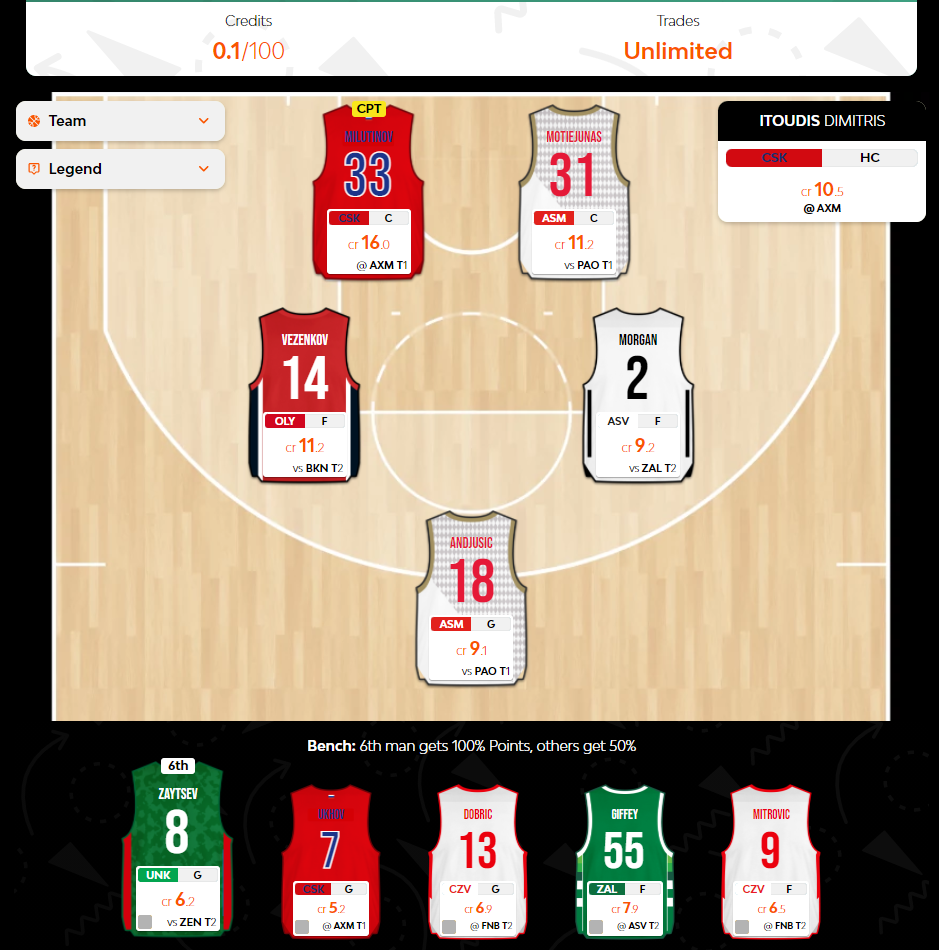 Από εκεί και πέρα, προστίθεται κι ένας περιορισμός, αυτός της παρουσίας μέχρι τριών παικτών από την ίδια Euroleague ομάδα, για την κανονική περίοδο (και μέχρι έξι παικτών για τα Playoffs και το Final Four). Έτσι, δεν μπορείτε να έχετε ταυτόχρονα στο ρόστερ σας τους Shved, Clyburn, Shengelia και Milutinov από την ΤΣΣΚΑ, για παράδειγμα. Κάτι τέτοιο βέβαια έτσι κι αλλιώς σπάνια θα συνέβαινε στο παιχνίδι, ενώ φέτος δεν υπάρχει η Χίμκι για να την στοχεύουν οι μάνατζερ τόσο επιδεικτικά...